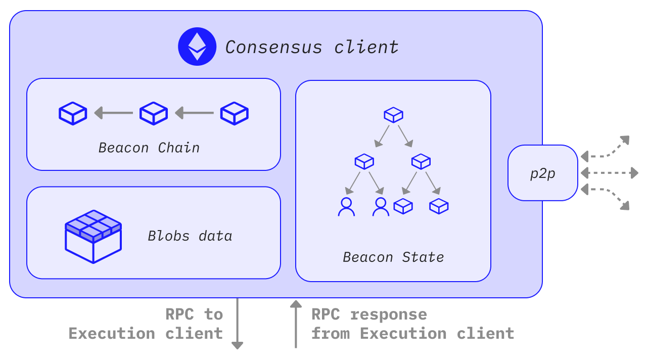 There are two parts to the client software (execution clients and consensus clients), each with its own distinct networking stack. As well as communicating with other Ethereum nodes, the execution and consensus clients have to communicate with each other. This page gives an introductory explanation of the protocols that enable this communication.